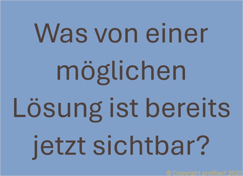 Lösungsfokus Es lohnt sich, über jede Frage nachzudenken. Man darf aber auch eine Frage überspringen und zur nächsten gehen.
